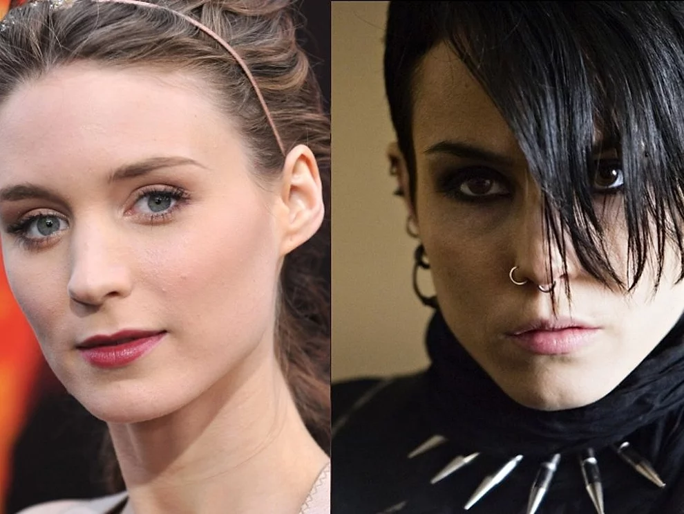 11. Руни Мара в роли Лисбет Саландер "Девушка с татуировкой дракона". Актрису коротко подстригли, покрасили в чёрный цвет и конечно - пирсинг