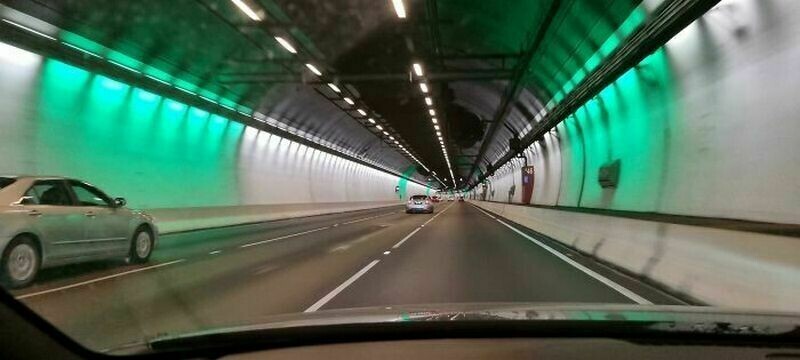 Зеленая подсветка в туннеле, которая указывает, что водитель не нарушает скоростной режим