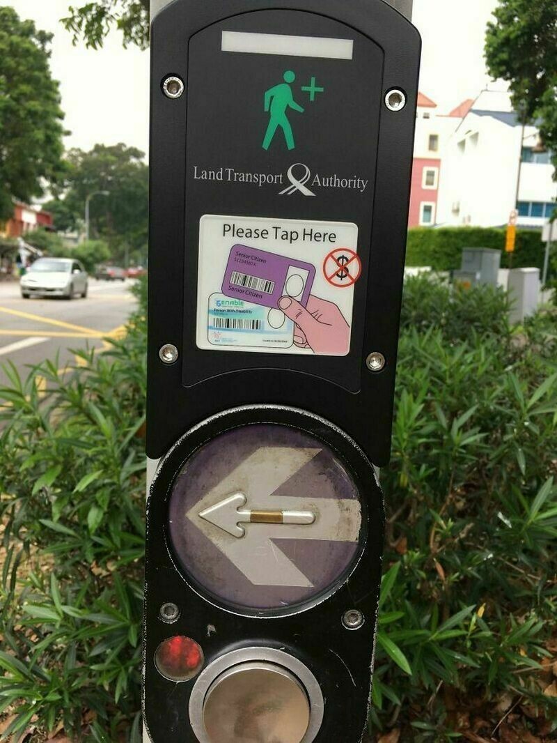 Светофор для пешеходов в Сингапуре, на котором можно добавить время для перехода через дорогу