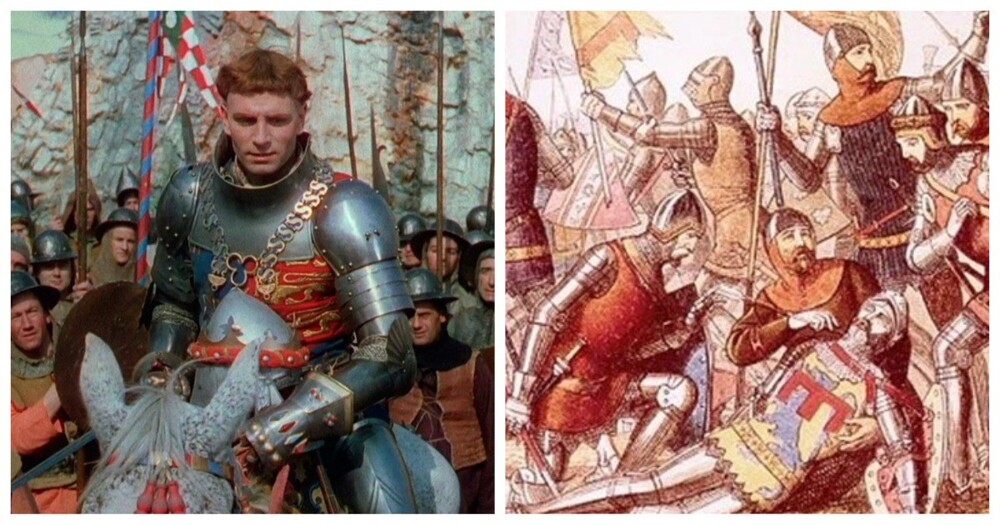 Когда-то Генрих V был молодым и горячим наследником английского престола. Любил женщин, выпивку и хорошую драку. Вот последнее его здорово и подкосило - в битве при Шрусбери (1403 год) будущему монарху пронзили стрелой лицо и он лишь чудом не умер.