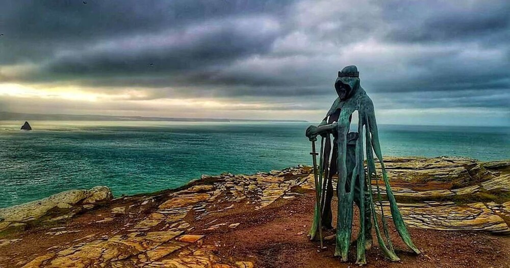 Статуя короля Артура возле замка Тинтагель в Корнуолле, Великобритания