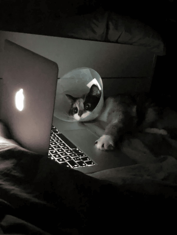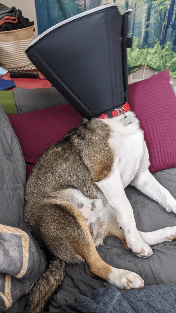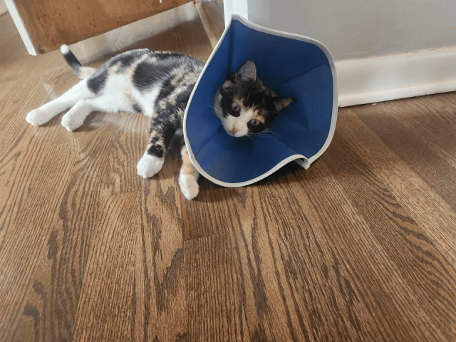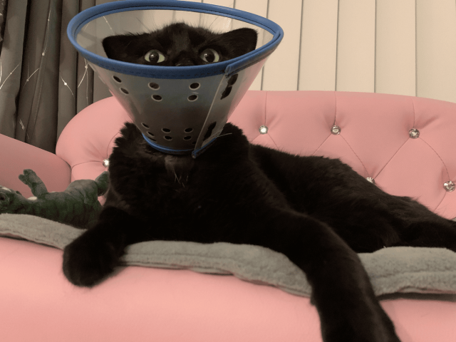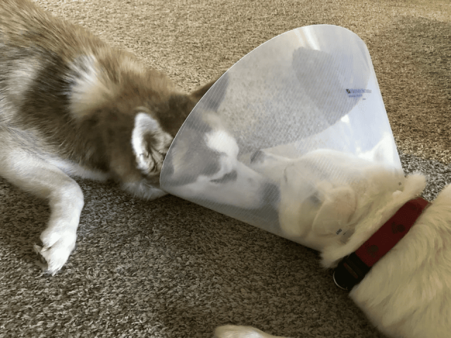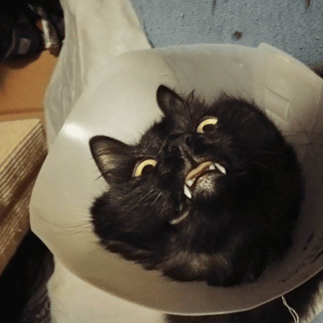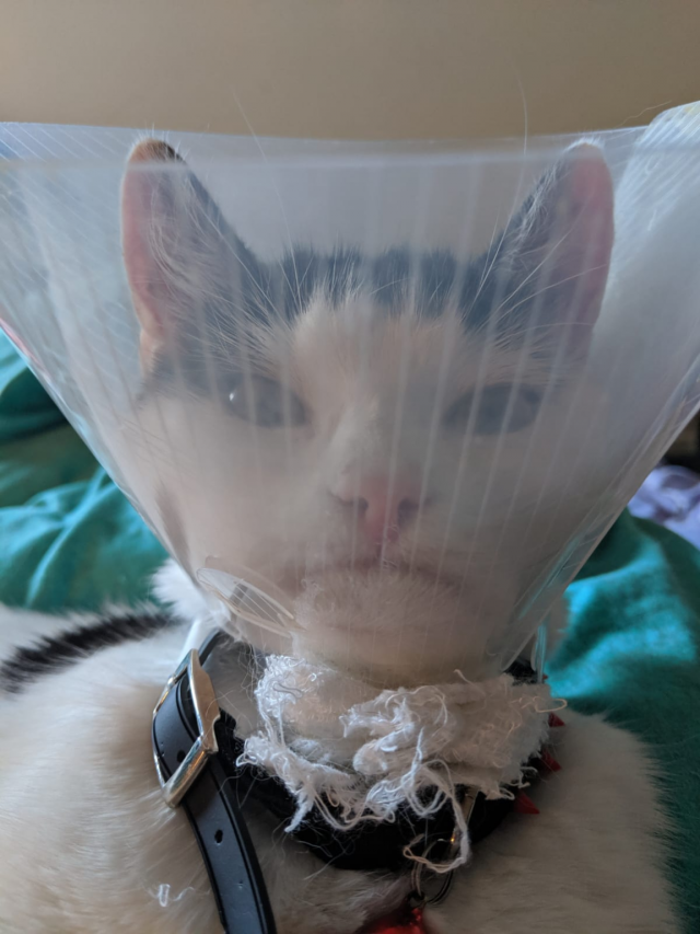 Так... "как снять защитный воротник, если у тебя лапки?"