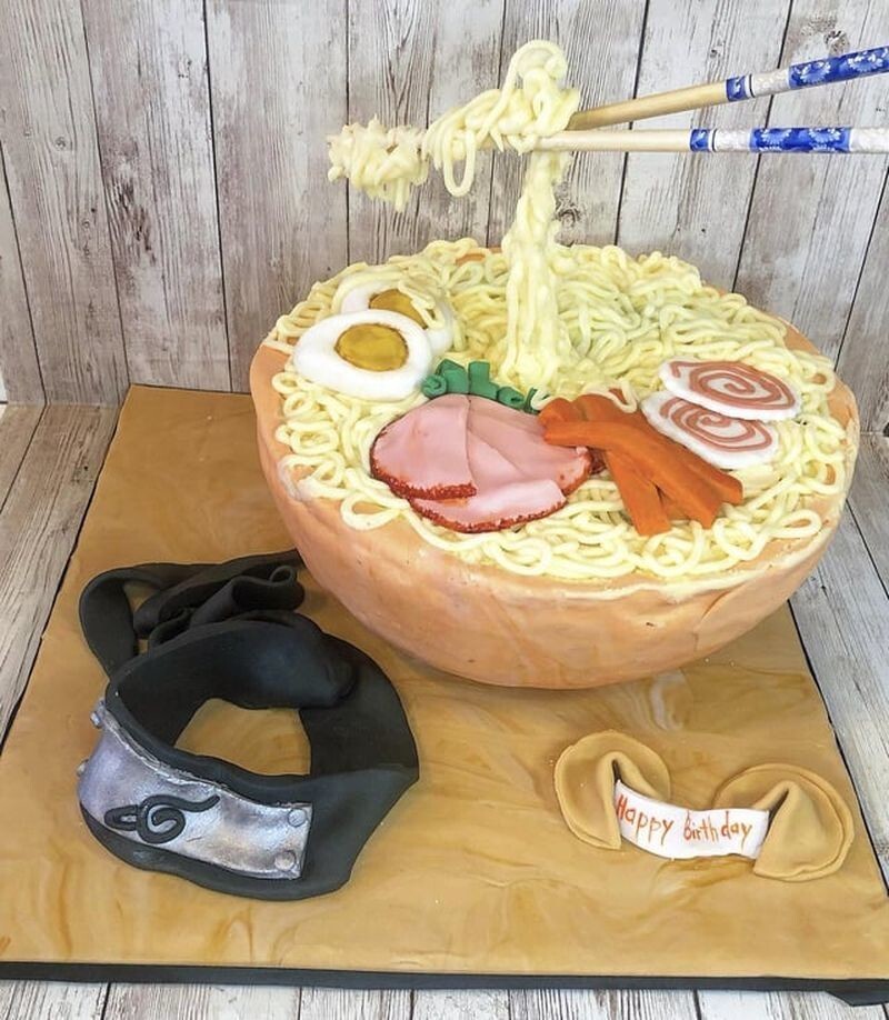 «Я приготовил свой первый торт, который бросает вызов гравитации. Всё съедобно, кроме палочек и доски»