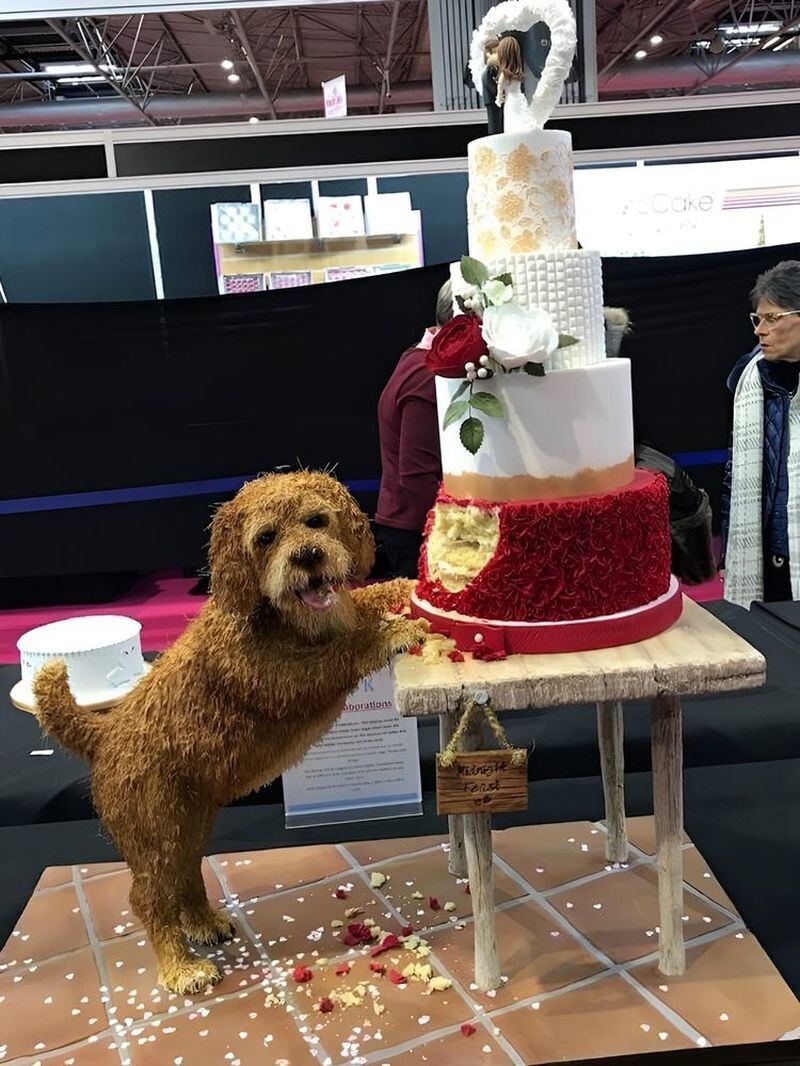 Собака выглядит настолько натурально, что не сразу можно сообразить, что она тоже торт