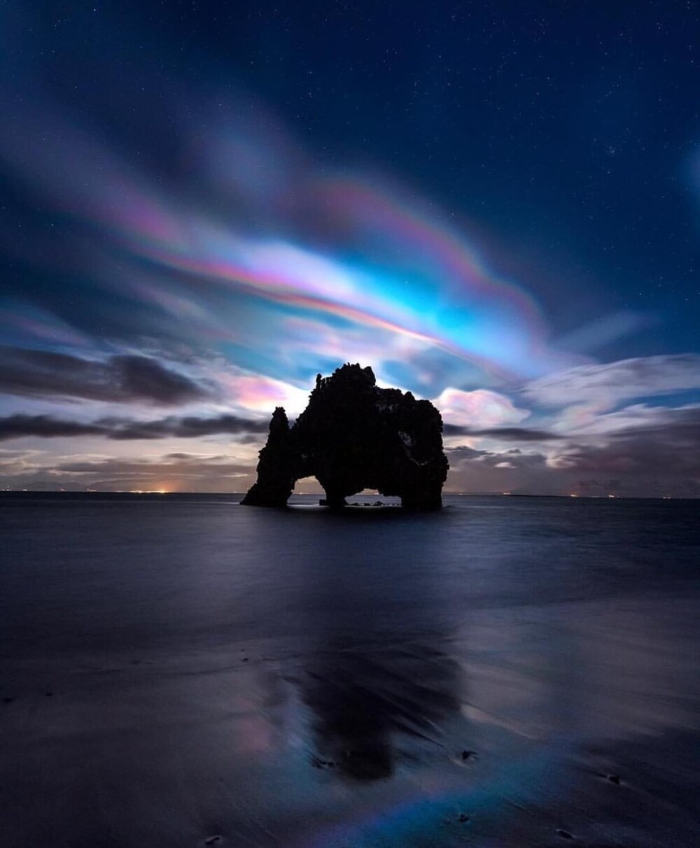 10. Перламутровые облака на закате в Акюрейри, Исландия. Это облака радужного цвета, которые появляются в полярных регионах. Они также известны как полярные стратосферные облака