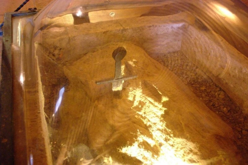 Рыцарь Галгано Гвидотти зарыл свой меч в камне, намереваясь использовать его как крест для молитвы, и дал обещание Богу, что он никогда больше не поднимет на человека свое оружие.