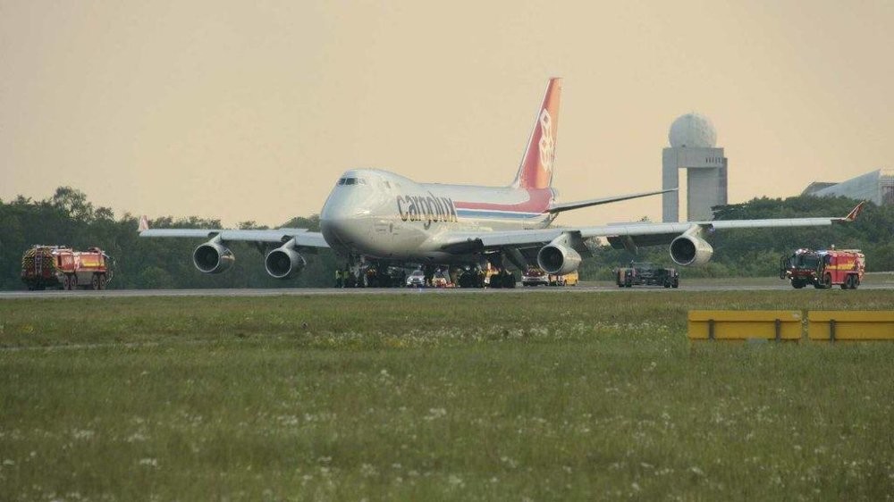 А так у Boeing 747 компании Cargolux отрывает правую стойку шасси (2 фото + 1 видео)