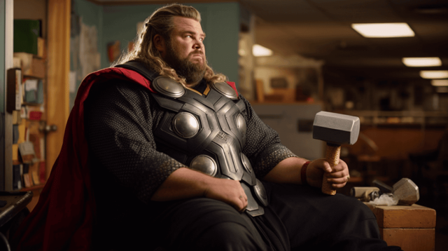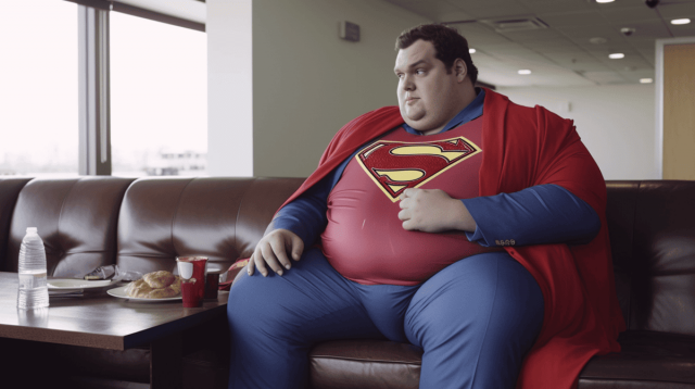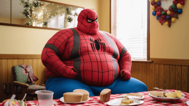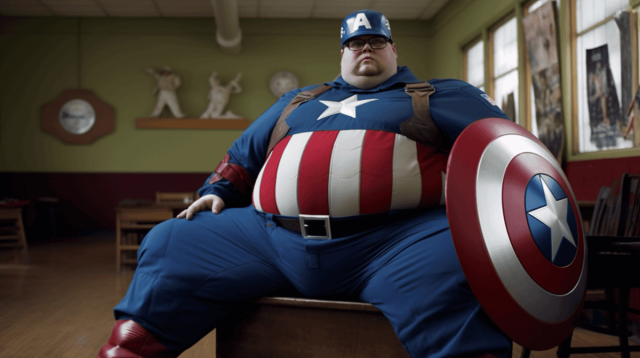 Комиксы очень часто обыгрывают идею мультивселенной, в которой существует бесконечное количество самых разных и странных вариантов нашего мира. Мы привыкли, что супергерои выглядят как безупречные красавцы с мощной мускулатурой. Страшно представить, как актеры впахивают в спортзале, чтобы соответствовать их идеальному телосложению. То ли дело вселенная, где все вокруг пухляши! В таком мире злодеи явно далеко не убегут. Следовательно, можно и на диване лишний часок полежать. Пользователь Reddit "ozdemirburak" с помощью нейросети прибавил... пару лишних килограмм. Получилось смешно и даже как-то умилительно.