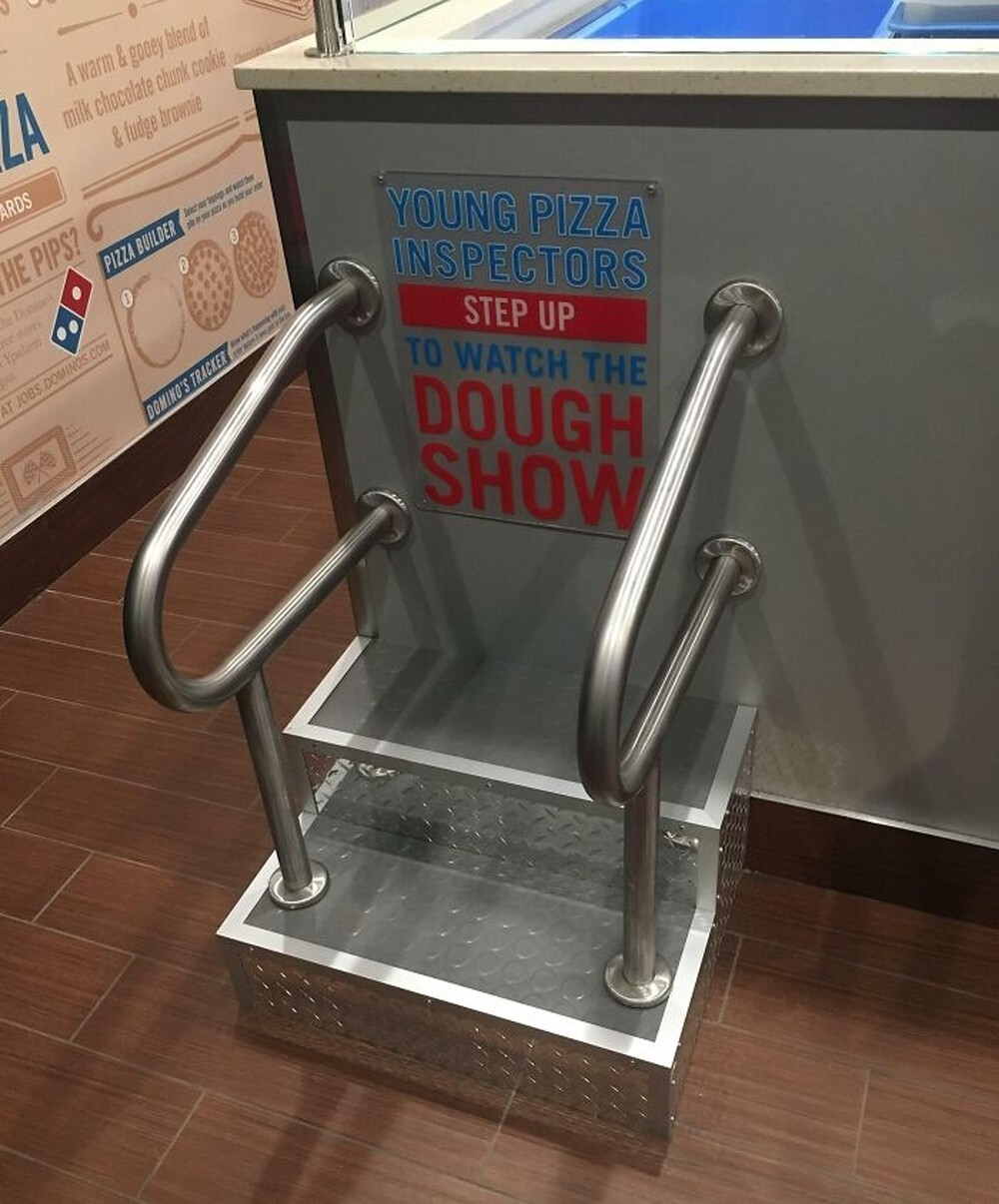 17. «В местной пиццерии Domino's есть ступеньки, куда дети могут встать и посмотреть, как готовят пиццу»