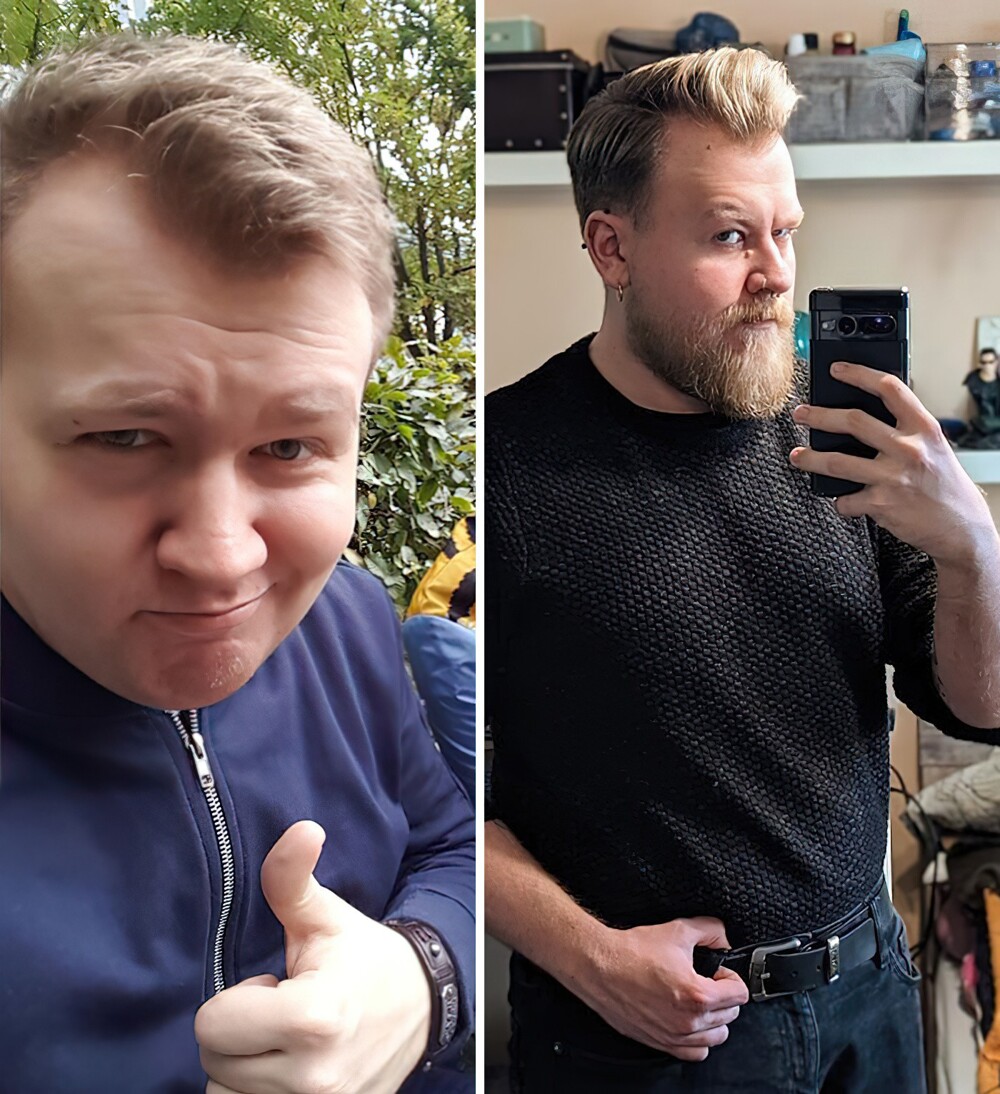 6. «Немного меньше веса и немного больше бороды. Моё до и после»