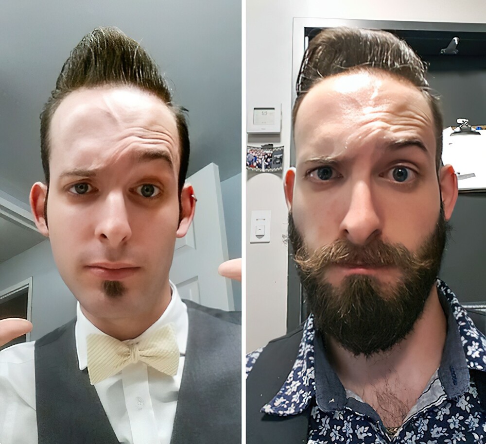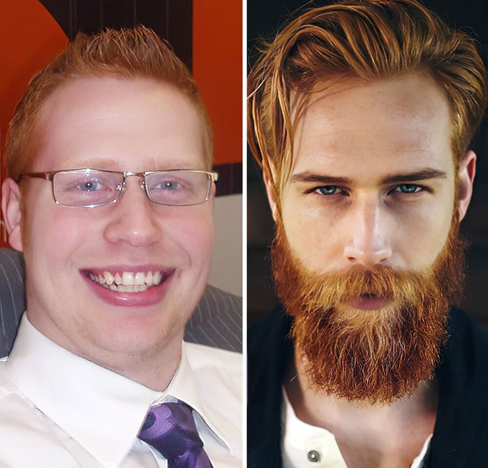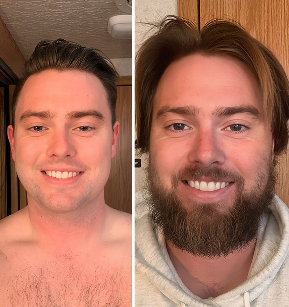 17. «До и после того, как я отрастил бороду. Разница между фотографиями — два месяца»