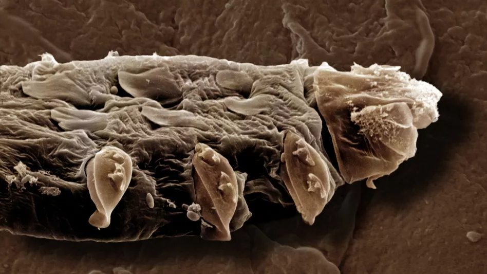 Demodex - одни из самых мелких членистоногих, которые относятся к паразитическим клещам. На теле человека чаще всего обитают виды Demodex folliculorum и Demodex brevis. Эти восьминогие клещи длиной менее миллиметра активны ночью - они любят полакомиться омертвевшими клетками кожи на нашем лице, сосках или ресницах. Яйца они откладывают в волосяных фолликулах или сальных железах. Несмотря на свой устрашающий внешний вид, эти клещи в основном безвредны. Лишь иногда они вызывают развитие некоторых кожных заболеваний у человека.
