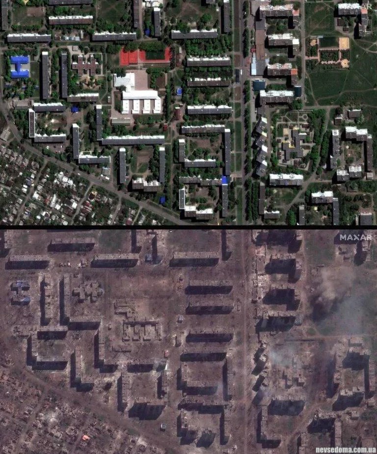 - Город, которого больше нет. На фото - День вышиванки в Бахмуте в 2021 году и спутниковые снимки города до и после прихода армии оккупантов.