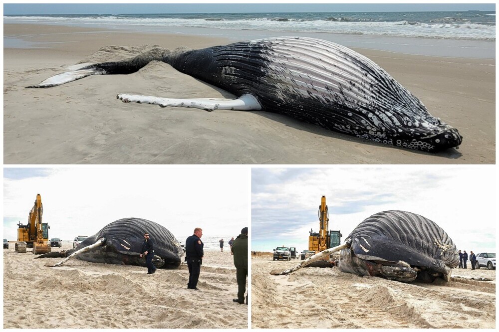 Семь горбатых китов выброшены на берег в Нью-Джерси и три в Нью-Йорке.