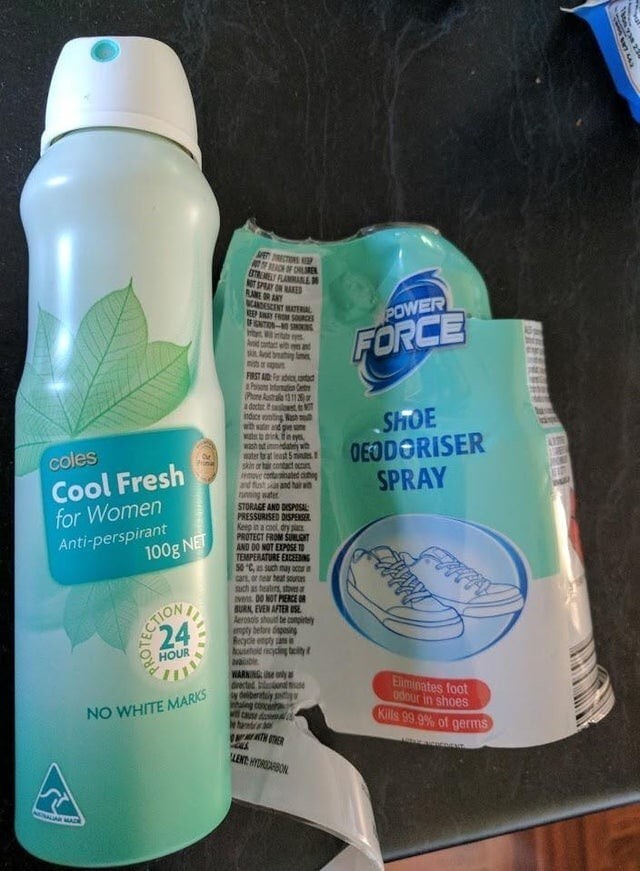 Оторвала упаковку и выяснила, что моё средство для обуви — обычный женский дезодорант