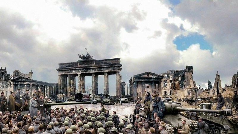 Евгений Долматовский читает стихи у Бранденбургских ворот, 10 мая 1945 года, Берлин