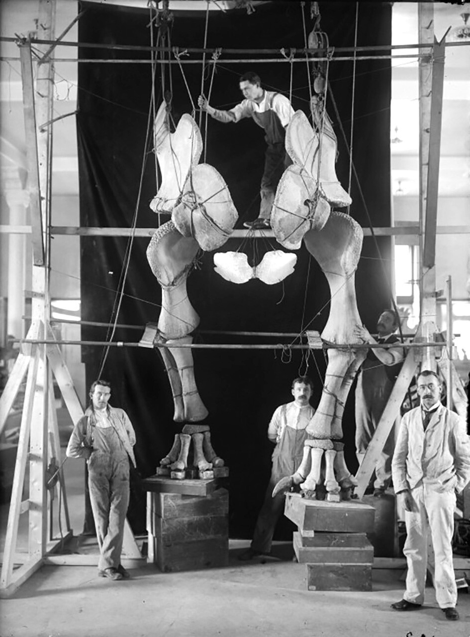 Сотрудники Американского музея естественной истории собирают бронтозавра, 1904 год