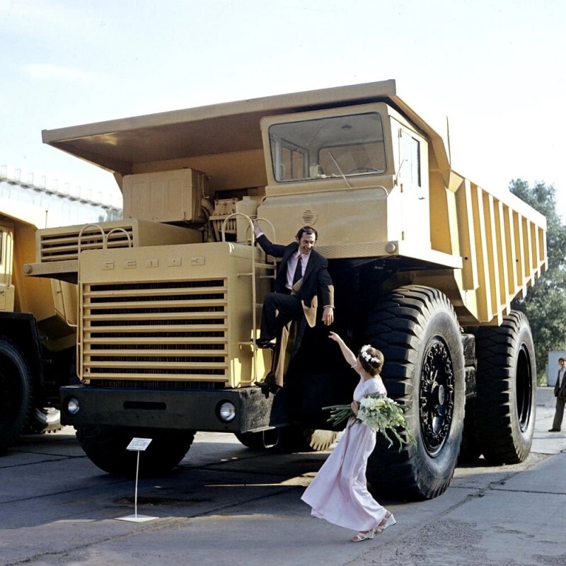 Свадебное фото с самосвалом БелАЗ-549 на белорусской ВДНХ, 1979 год