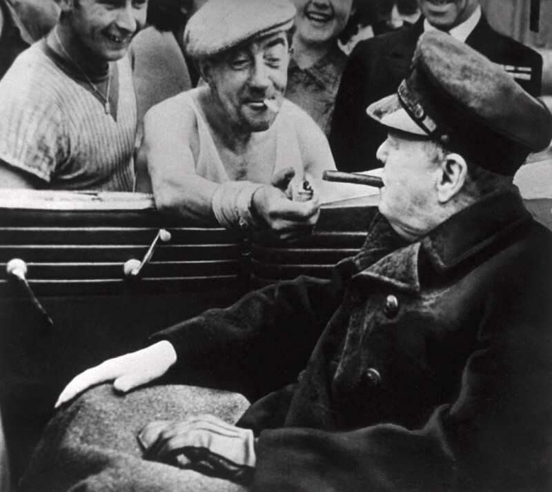 Докер даёт прикурить Уинстону Черчиллю в Шербуре, Франция, 1944 год