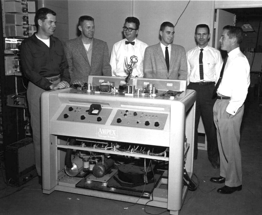 Американские инженеры Чарльз Гинсберг, Чарльз Андерсен и Рэй Долби продемонстрировали своё изобретение — первый видеомагнитофон. 1956 г.