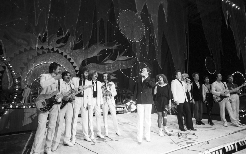 Лев Лещенко, Алла Пугачева, Иосиф Кобзон и трио "Экспрессия" (Людмила Чеснулявичюте, Борис Моисеев, Лариса Хитана). Сборы от концерта пошли в Советский фонд мира. Автор фото: Александр Лыскин