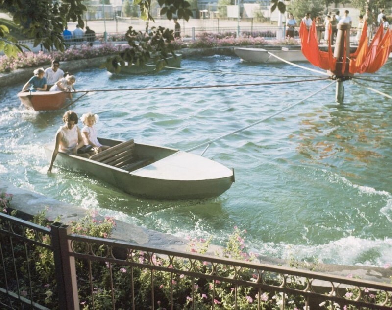 Киргизская ССР. Городской парк культуры и отдыха в городе Фрунзе. Карусель на воде, 1973 год