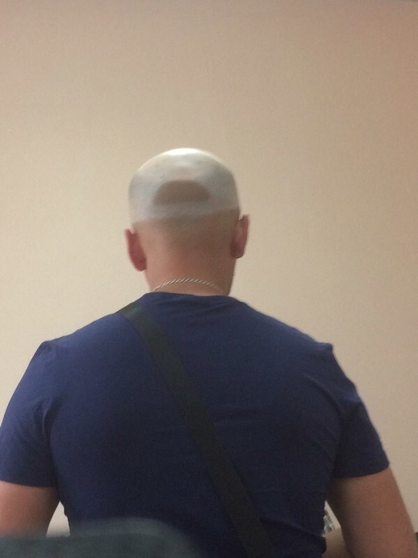 15. Коллега побрил голову, поехал играть в гольф и надел на голову козырёк