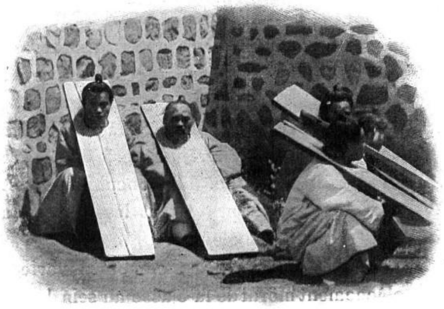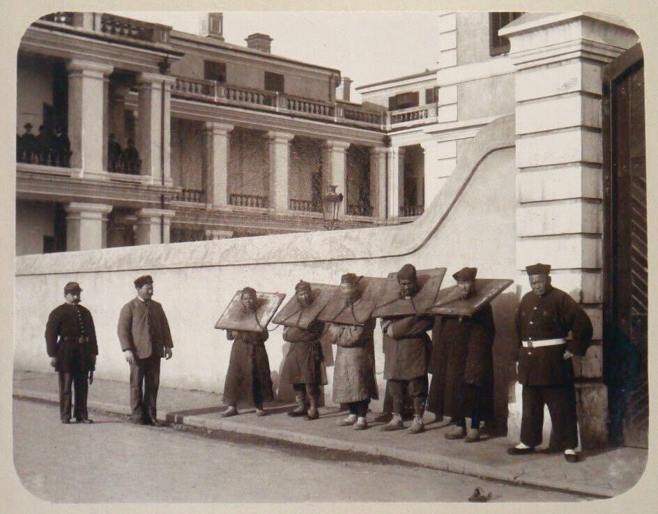 8 наглядных фото очень необычного наказания преступников, которое использовали в Китае до начала ХХ века (8 фото)