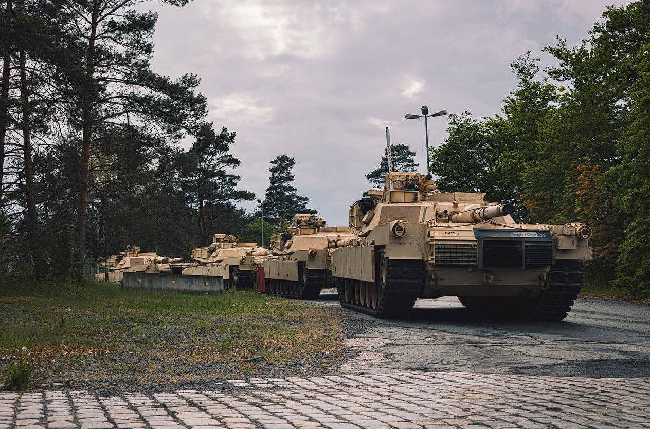 - Американские танки Abrams M1A1 на полигоне Графенвёр в Германии для обучения украинских танкистов