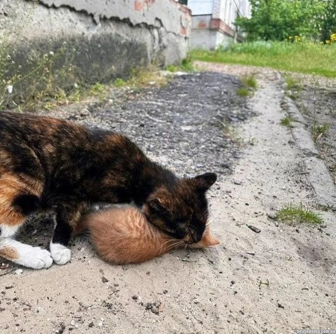 - Волонтеры сфотографировали, как кошка эвакуирует котенка в погреб, во время бомбардировки Краматорска, Украина
