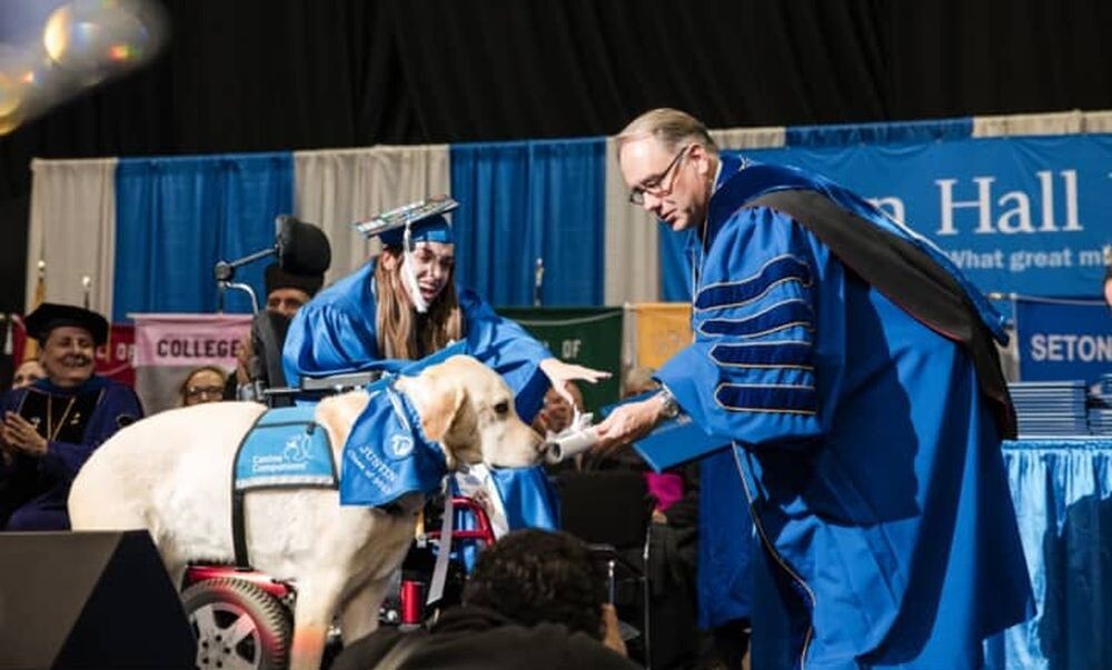 Служебные собаки всюду сопровождают своих хозяев, и лабрадор-ретривер по кличке Джастин не исключение. Когда его владелица Грейс Мариани поступила в Университет Сетон-Холл (Нью-Джерси, США), чтобы получить педагогическое образование, он отправился вместе с ней.