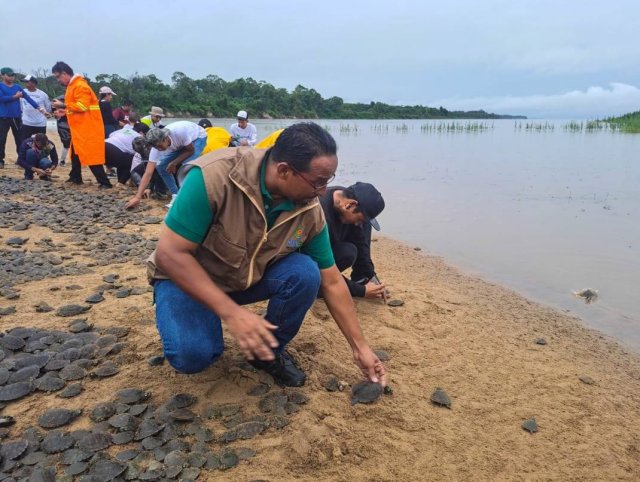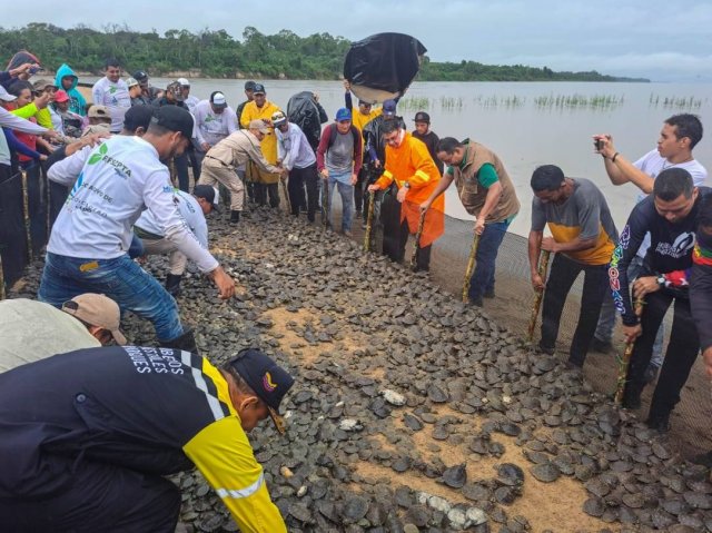 Экологи из Венесуэлы выпустили в дикую природу 20 тысяч исчезающих черепах Аррау (4 фото)