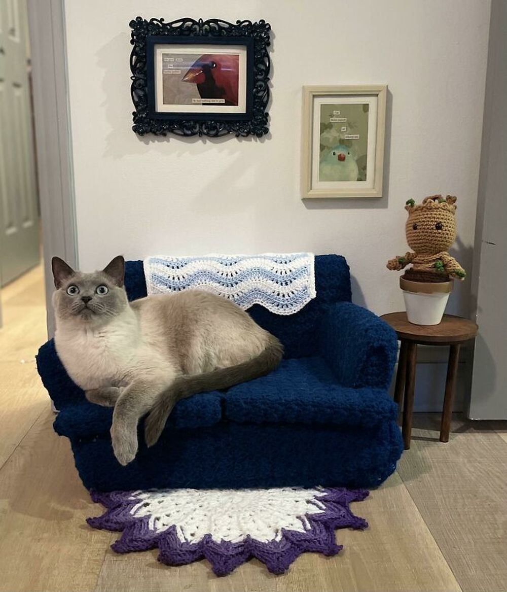 23. «Диван, который я сделала специально для своей кошки размера XL, поскольку обычно кошачья мебель слишком мала для нее»