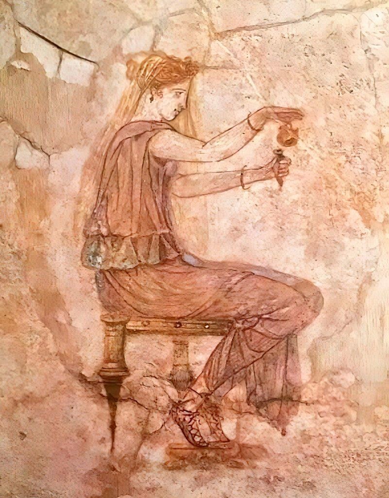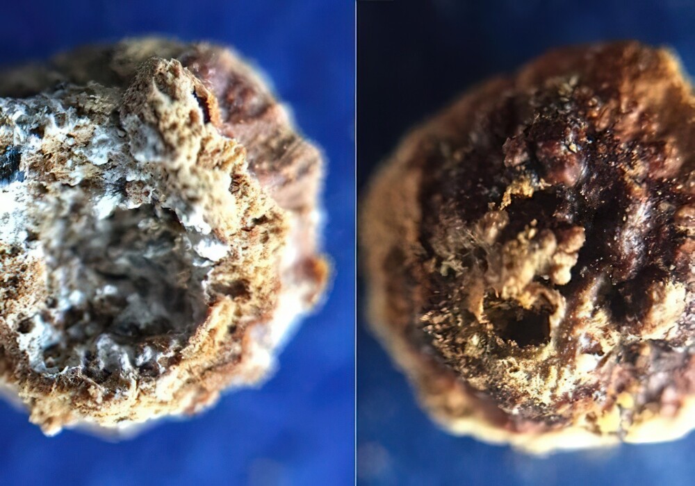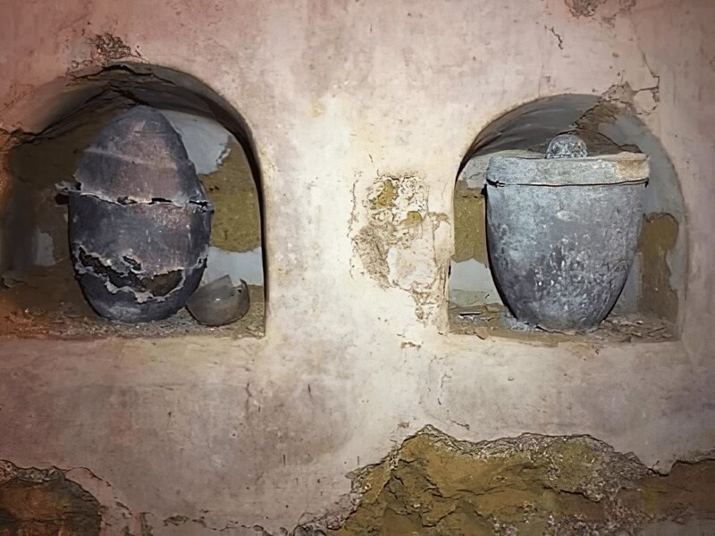 В мавзолее были захоронены останки шести членов богатой семьи, и в одной из ниш (где была захоронена женщина возрастом около 40 лет) нашли кварцевый сосуд с некой «твёрдой массой» внутри.