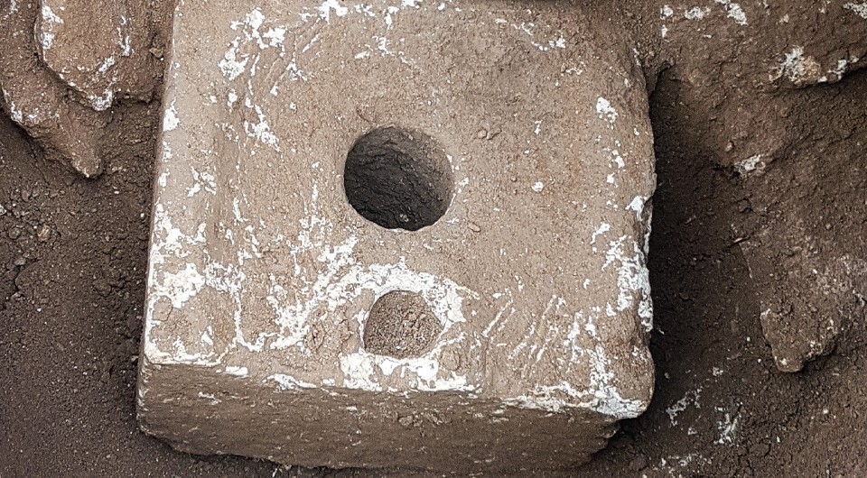 Каменная плита с отверстием, найденная в районе Армон ха-Нацив