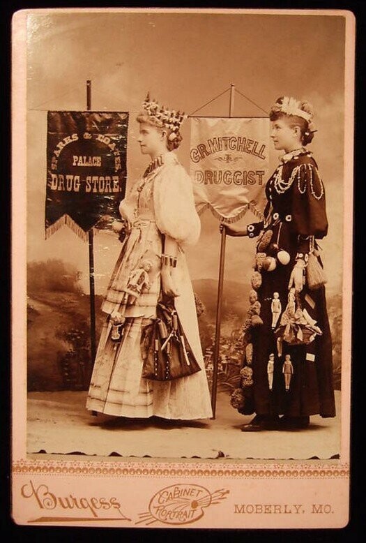 Закончить подборку хочу фотокарточкой, на которой две леди рекламируют две аптеки в Миссури.