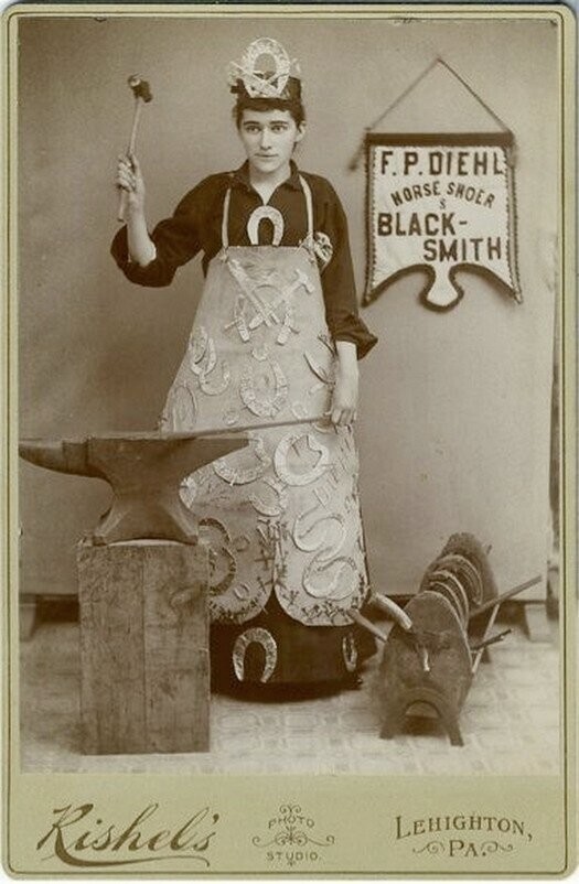 Впрочем, у меня получилось отыскать ещё одно фото с рекламой подков. Смотрим рекламу кузнеца F.P. Diehl из Пенсильвании.
