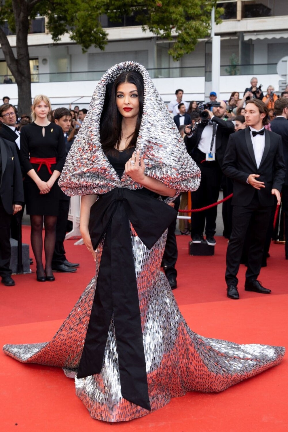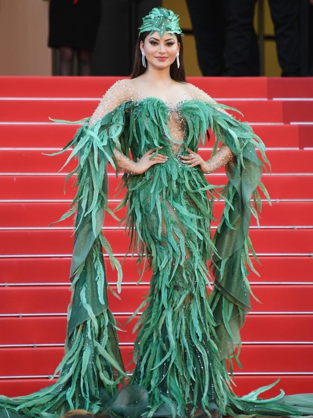 Интересно, что это платье райской птички от ливанского дизайнера Ziad Nakad выбрали сразу две знаменитости: индийская актриса и модель Урваши Рутела. Ситуацию спасло то, что девушки вышли в одинаковых платьях с разницей в 6 дней.