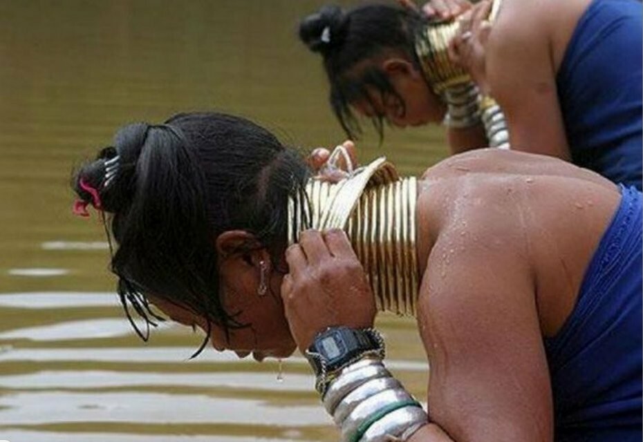 Этот вывод напрашивается сам собой, стоит лишь взглянуть на монолитную конструкцию "ожерелья". Неудивительно, что именно так думают люди, которые смотрят на женщин этого народа. Да и действительно, шея плотно закована в металл, как ее можно мыть?