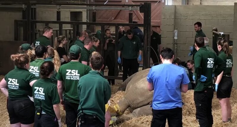 Сотрудники Уипснейдского зоопарка (Данстейбл, Англия) решили, что их подопечной, 31-летней самке носорога по кличке Микуми, необходимо проверить зубы. Для проведения стоматологического осмотра потребовались усилия двадцати человек.