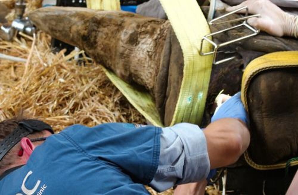Крис тщательно осмотрел рот усыплённой Микуми, используя специальное оборудование, в то время как около 20 сотрудников зоопарка ассистировали ему. В частности, придерживая тяжёлую носорожью челюсть.