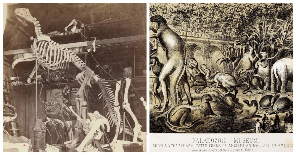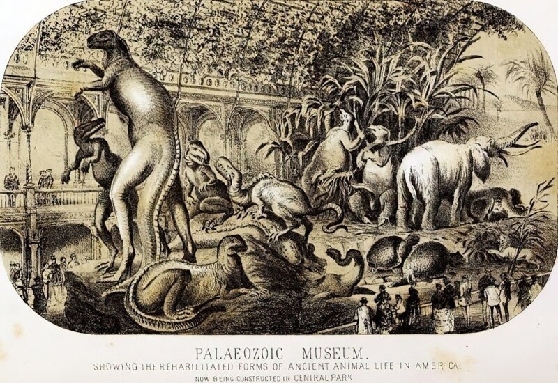 В 1870 году палеонтология находилась ещё в зачаточном состоянии, и новые открытия, сделанные учеными в разных частях мира, подогревали любопытство к огромным вымершим животным. В Музее Палеозоя должны были быть представлены работы Бенджамина Уотерхауса Хокинса, английского художника-естествоиспытателя — он вызвал интерес к динозаврам в Соединённых Штатах, выставив первый в мире установленный скелет динозавра в Филадельфии в 1868 году.