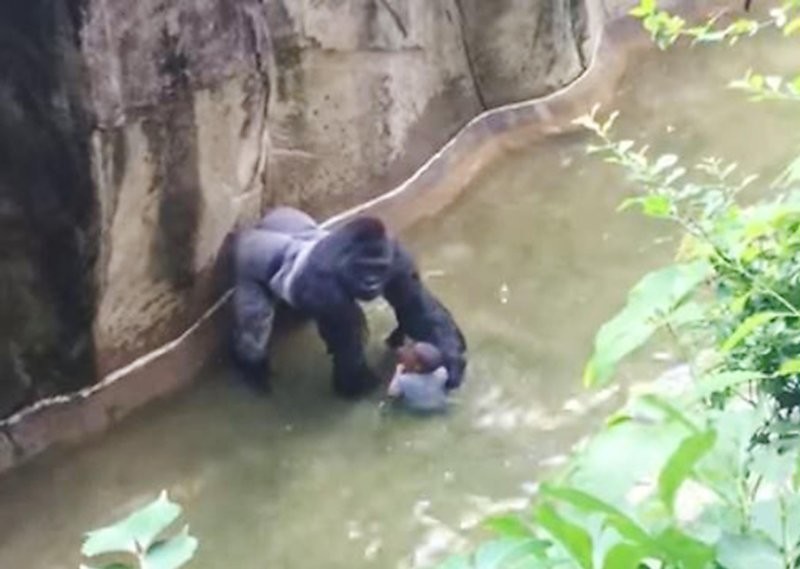 28 мая 2016 года в зоопарке Цинциннати 3-летний мальчик случайно упал в вольер с гориллами. Рядом с ним, в воде, оказался 17-летний самец по кличке Харамбе. Тот внезапно подошёл к мальчику, и начал таскать его по углам загона, а затем поставил его на ноги и начал осматривать. Сотрудник зоопарка быстро отреагировал, чтобы спасти жизнь ребёнка, и решил застрелить животное. В "заботе", которую проявила горилла, сотрудники заподозрили смертельную опасность, и застрелили Харамбе. Всё это произошло на глазах у взволнованной публики через 10 минут после того, как мальчик упал.