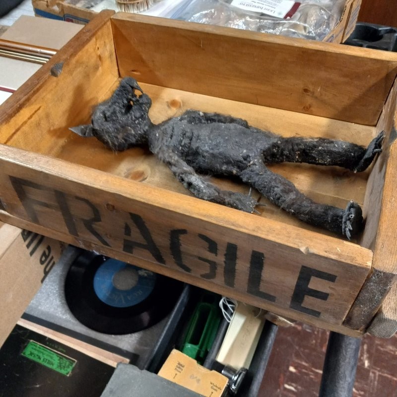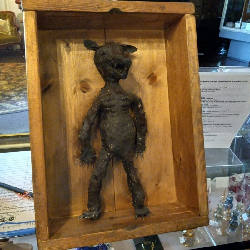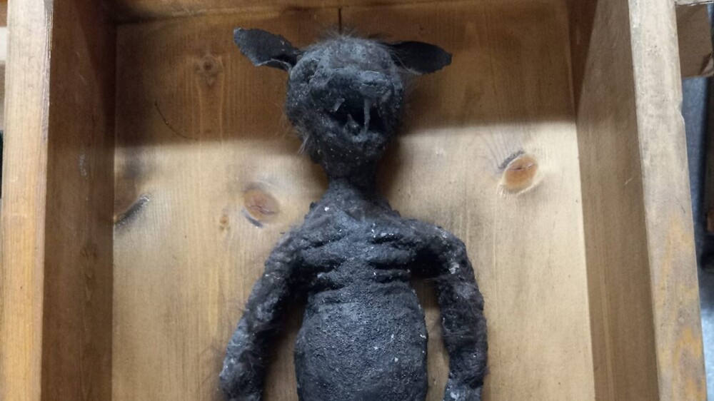 Прежде всего, сотрудники музея убедились, что имеют дело вовсе не с мумией. Жутковатый сувенир изготовлен из гипса или глины с использованием когтей и меха животных. Такие подделки раньше часто использовались в цирках, чтобы обманывать доверчивый народ.