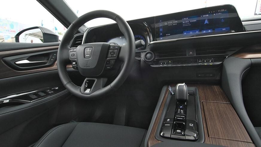 У водителя седана сенсорных кнопок гораздо меньше. Консервативность новинки подчёркнута множеством традиционных для Toyota физических клавиш, а за налёт технологичности отвечают разве что два больших дисплея для приборов и медиасистемы.