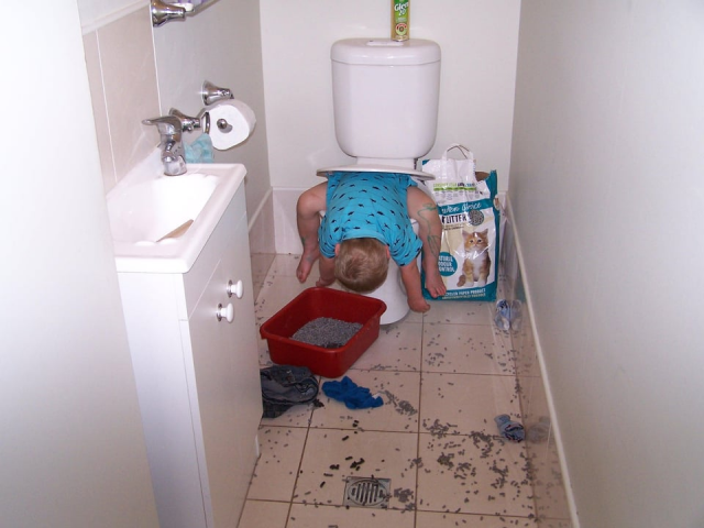 Ребёнок решил накормить унитаз