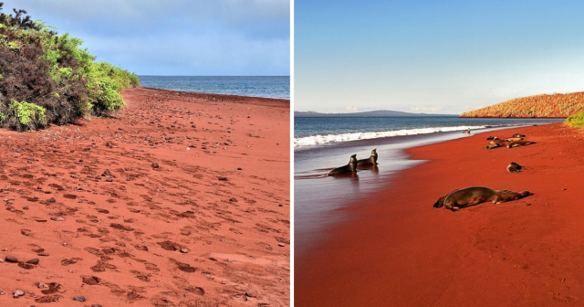 Красный пляж на острове Рабида Галапагосского архипелага