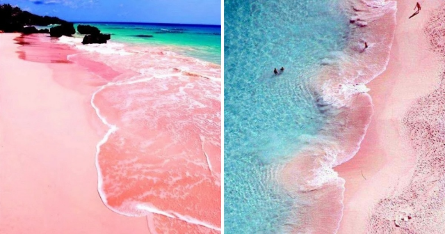 Этот пляж получил своё название благодаря розовому песку, который образовался из-за микроскопических раковин розовых моллюсков. Пляж находится на острове Харбор, который является частью Багамских островов.
