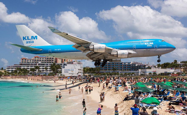 Этот пляж находится вблизи Международного аэропорта Принцессы Юлианы. Самолеты проходят всего в нескольких метрах над головами туристов, что делает это место очень необычным.