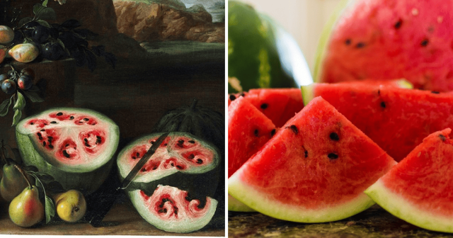 Всех, кто интересуется тем как выглядел раньше предок арбуза, селекционеры отсылают к картине художника Джованни Станки, написанной между 1645 и 1672 годами. Можно заметить, что мякоти в нём было куда меньше, чем у сегодняшнего арбуза.